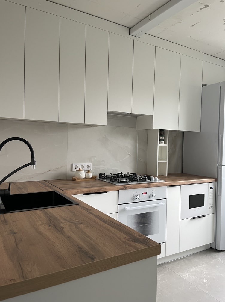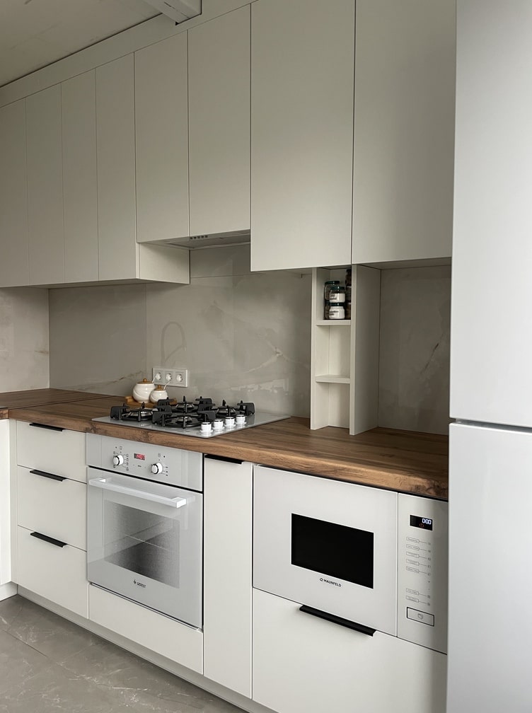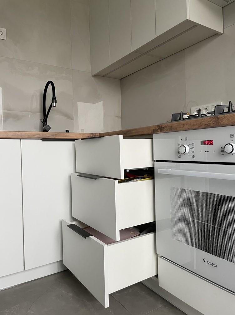 Разработка эргономичного проекта кухни вместе с профессионалом, подбор фурнитуры и материалов. Окончательный расчет стоимости.