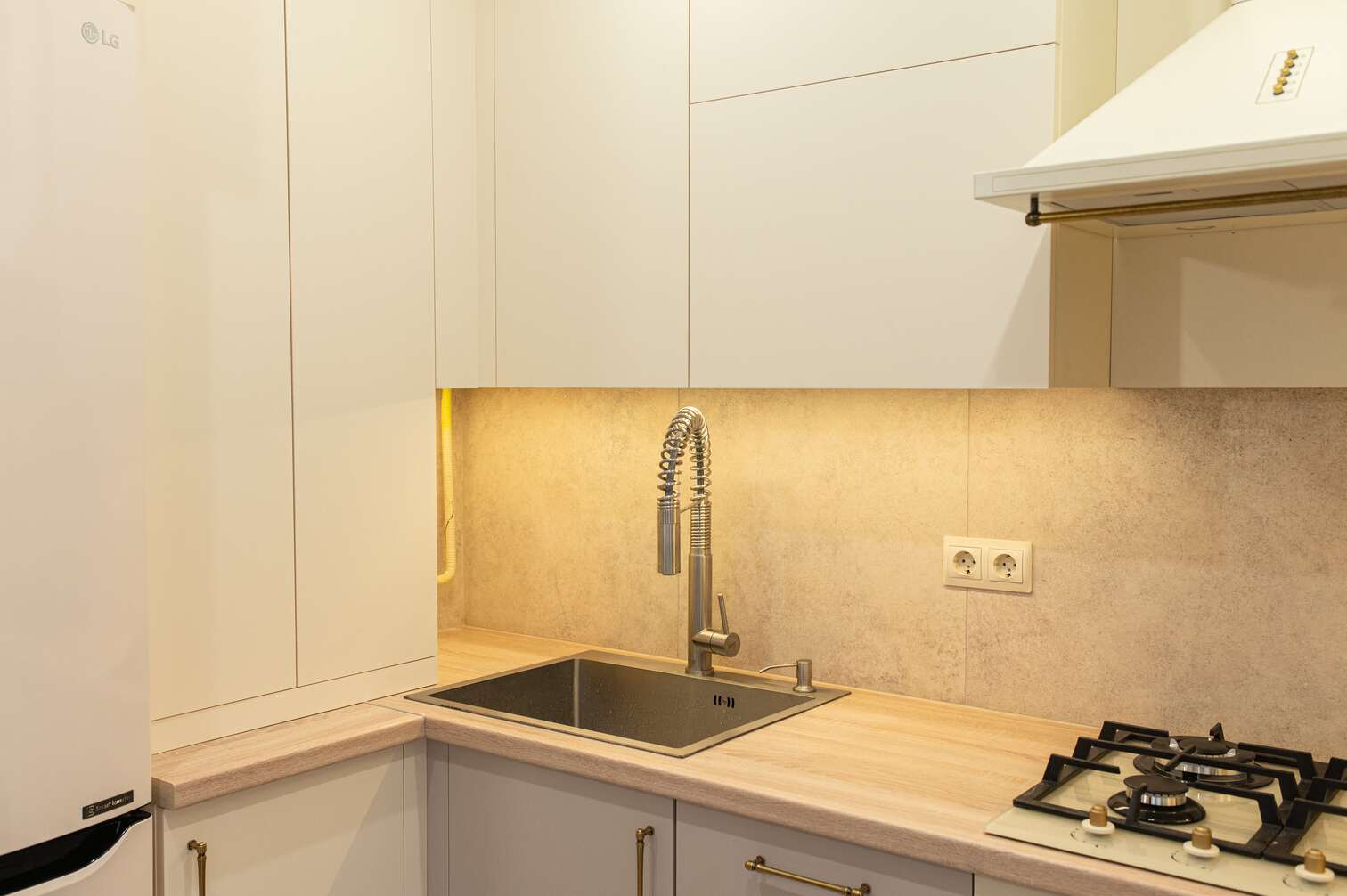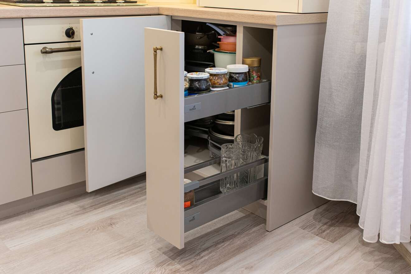 Разработка эргономичного проекта кухни вместе с профессионалом, подбор фурнитуры и материалов. Окончательный расчет стоимости.