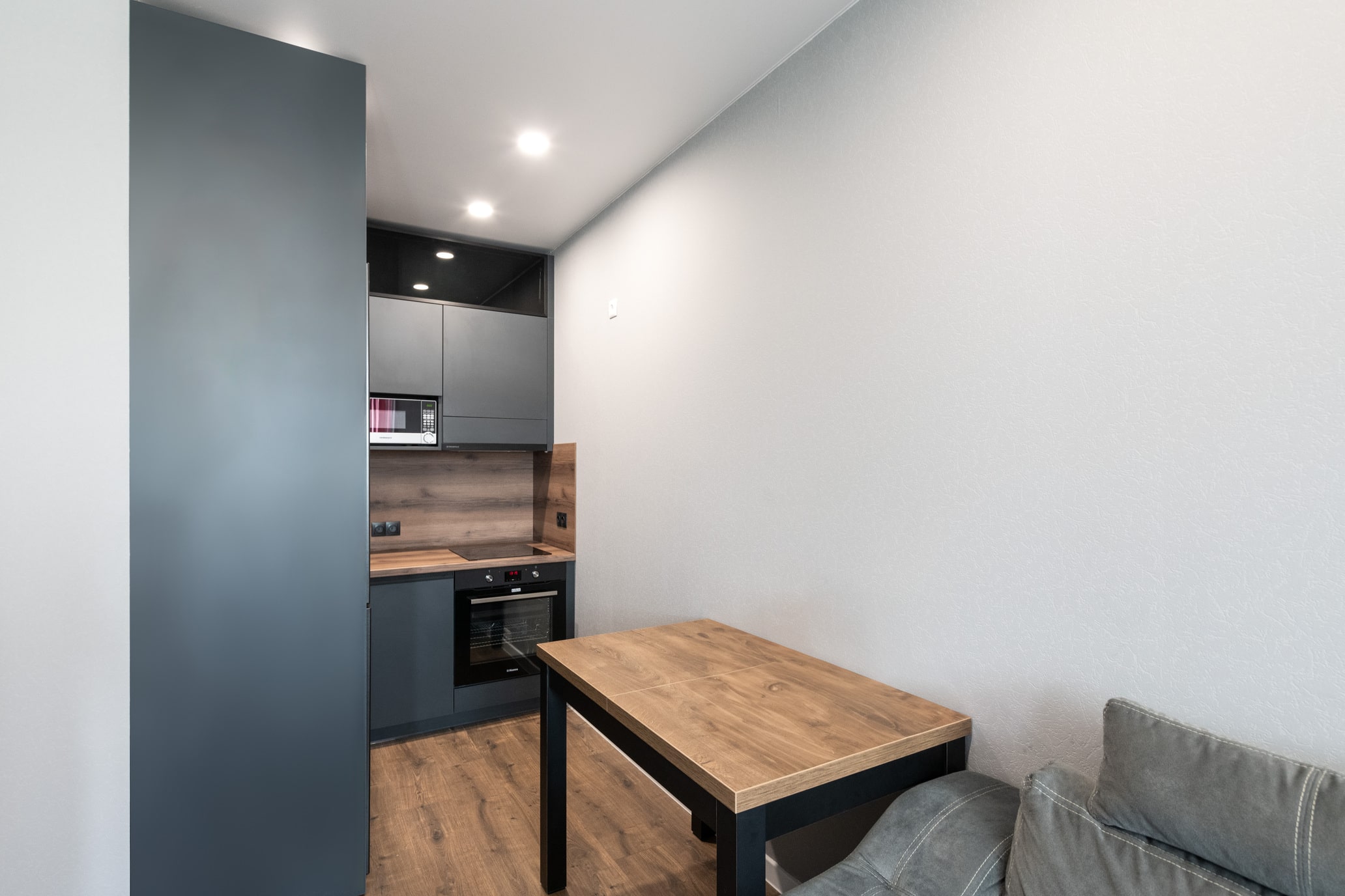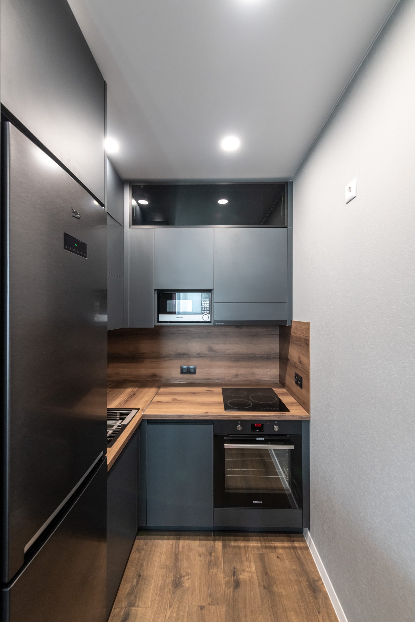 Разработка эргономичного проекта кухни вместе с профессионалом, подбор фурнитуры и материалов. Окончательный расчет стоимости.