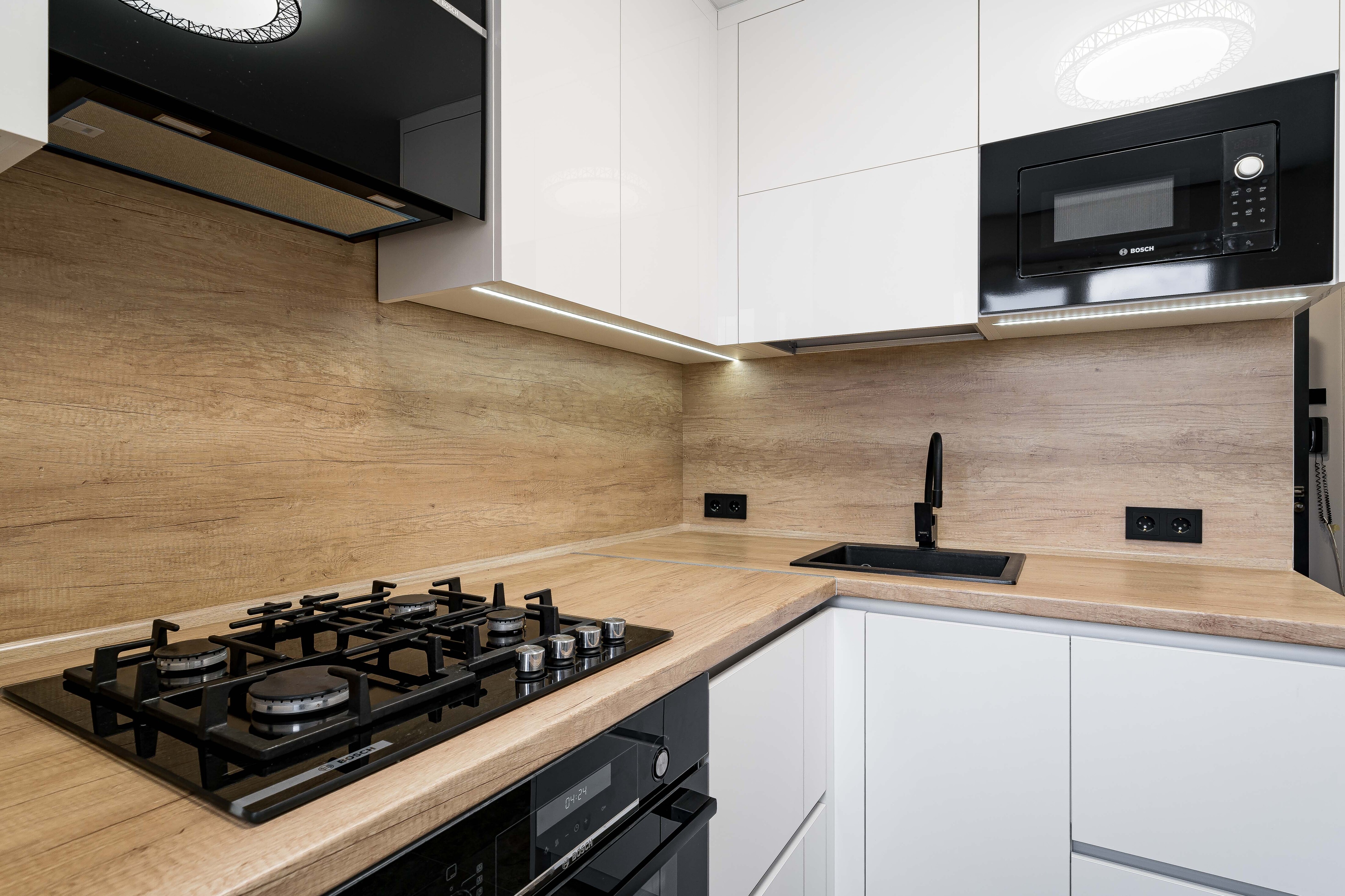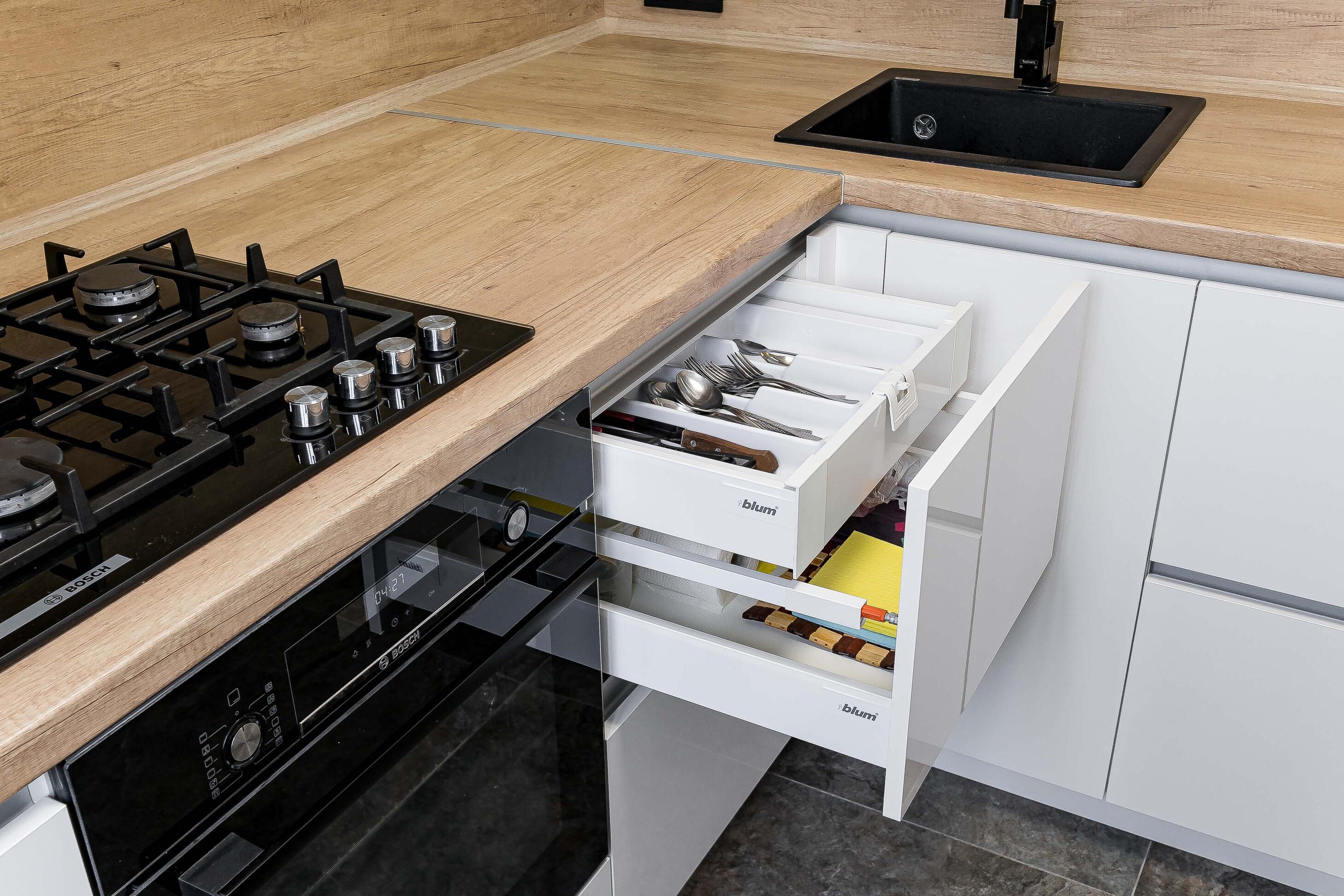 Разработка эргономичного проекта кухни вместе с профессионалом, подбор фурнитуры и материалов. Окончательный расчет стоимости.