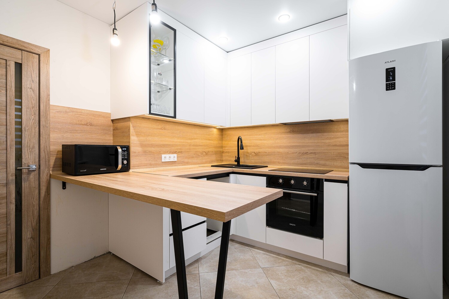 Разработка эргономичного проекта кухни вместе с профессионалом, подбор фурнитуры и материалов. Окончательный расчет стоимости.