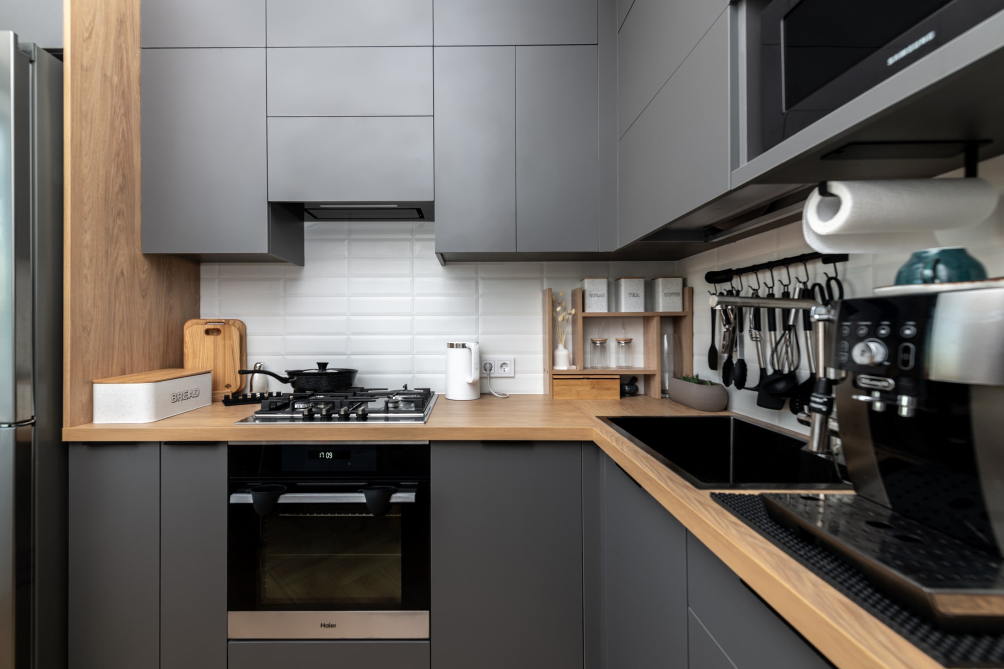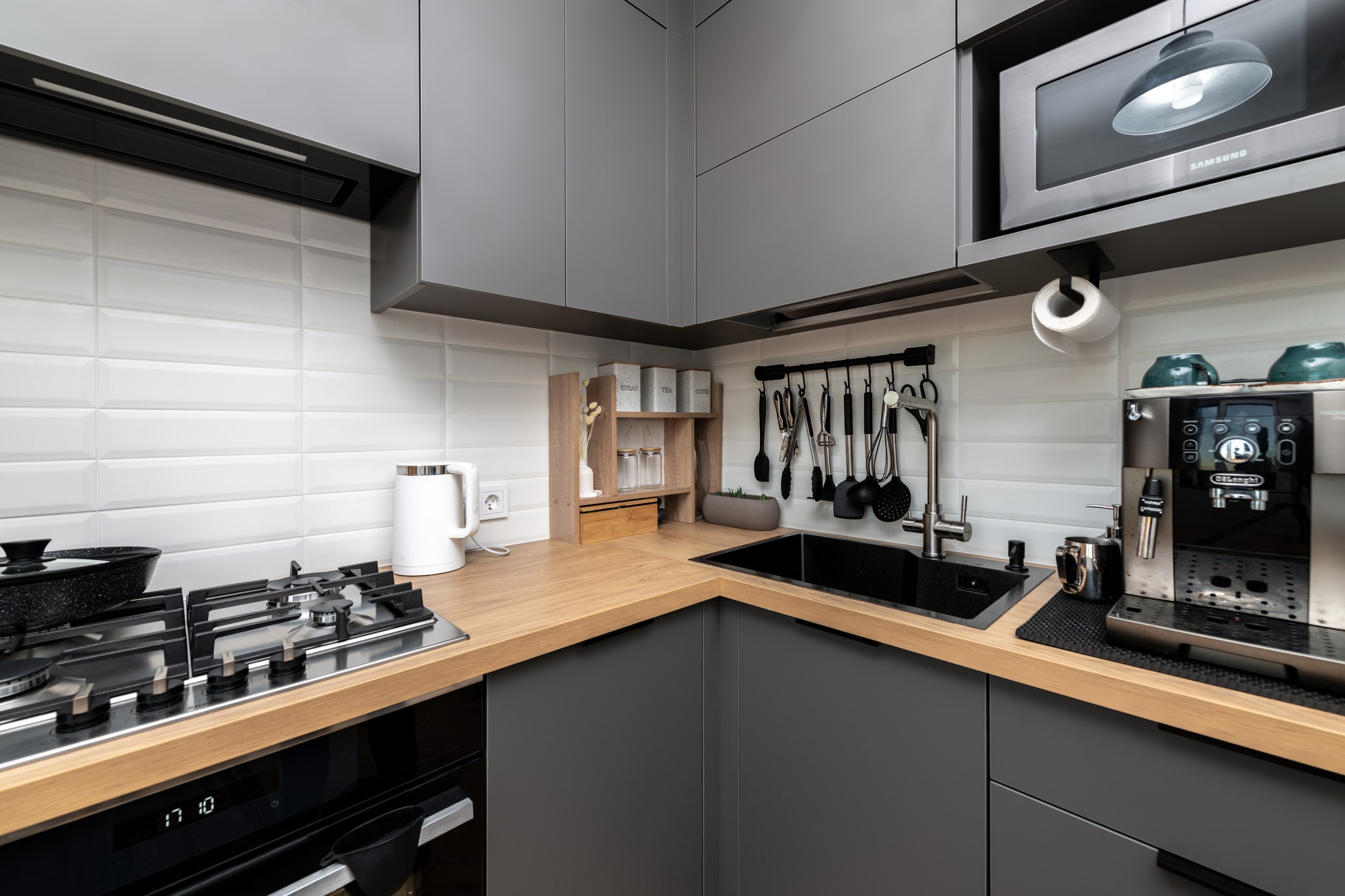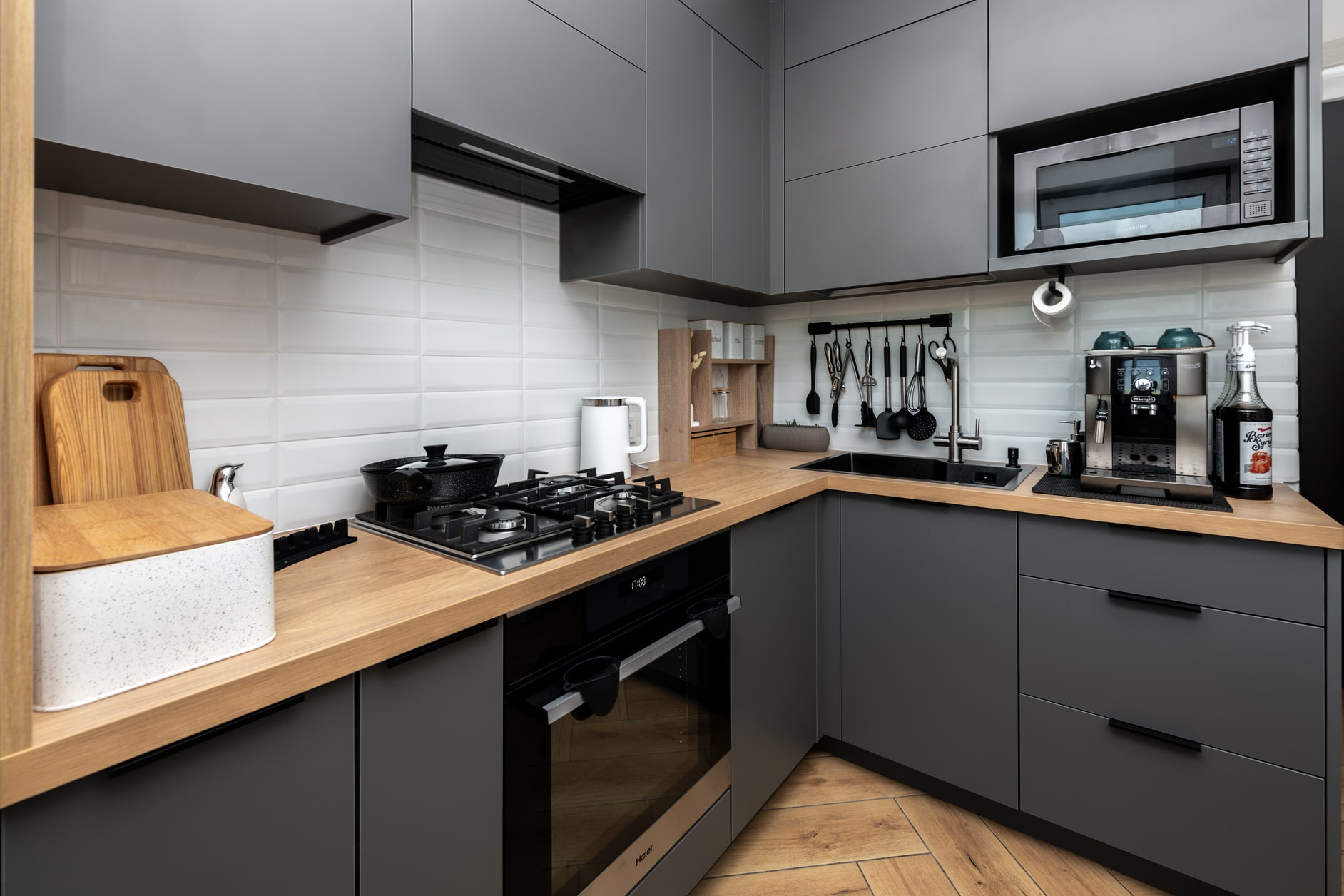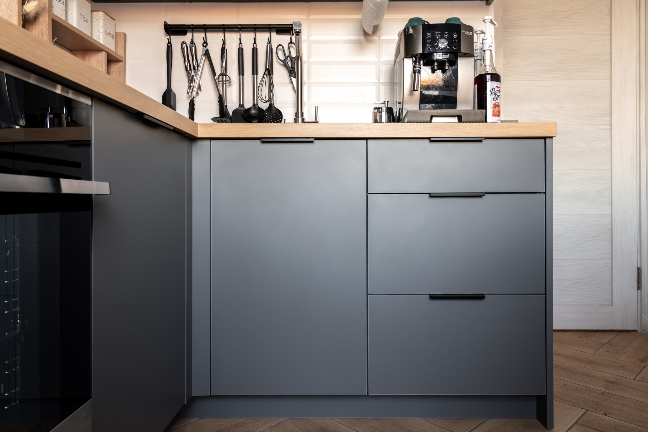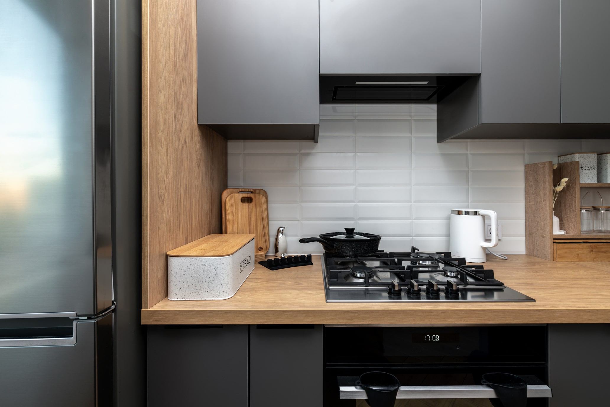 Разработка эргономичного проекта кухни вместе с профессионалом, подбор фурнитуры и материалов. Окончательный расчет стоимости.