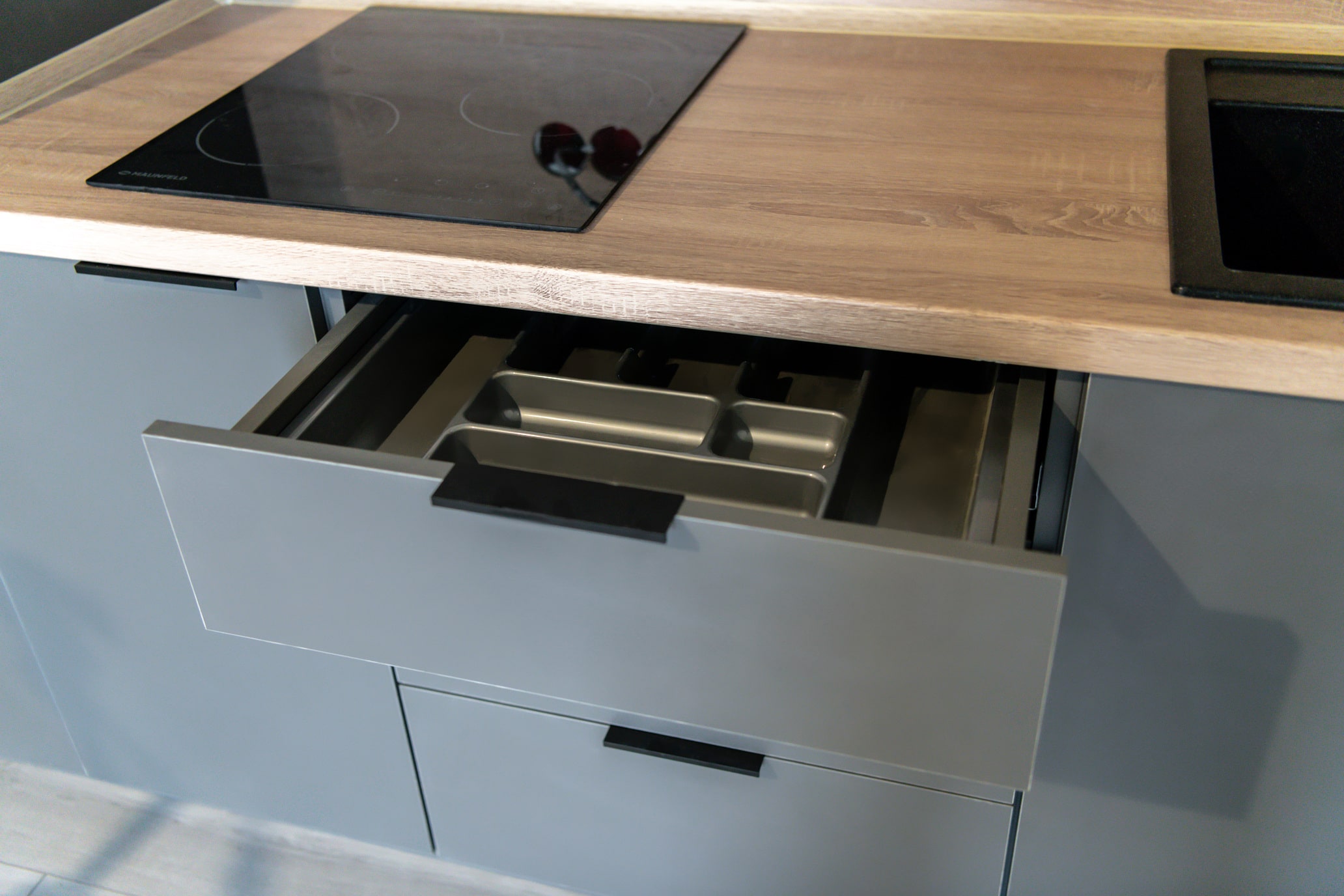 Разработка эргономичного проекта кухни вместе с профессионалом, подбор фурнитуры и материалов. Окончательный расчет стоимости.