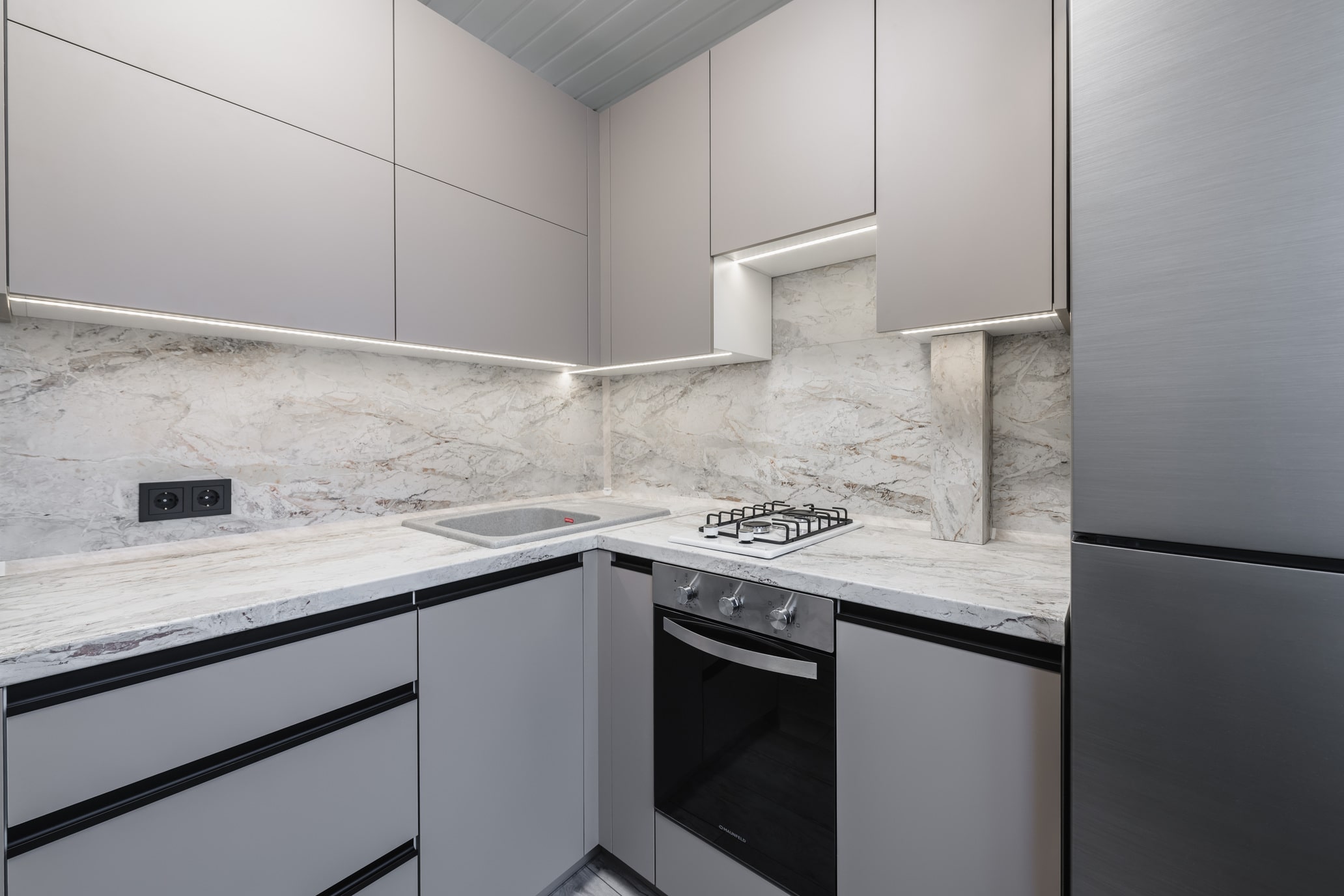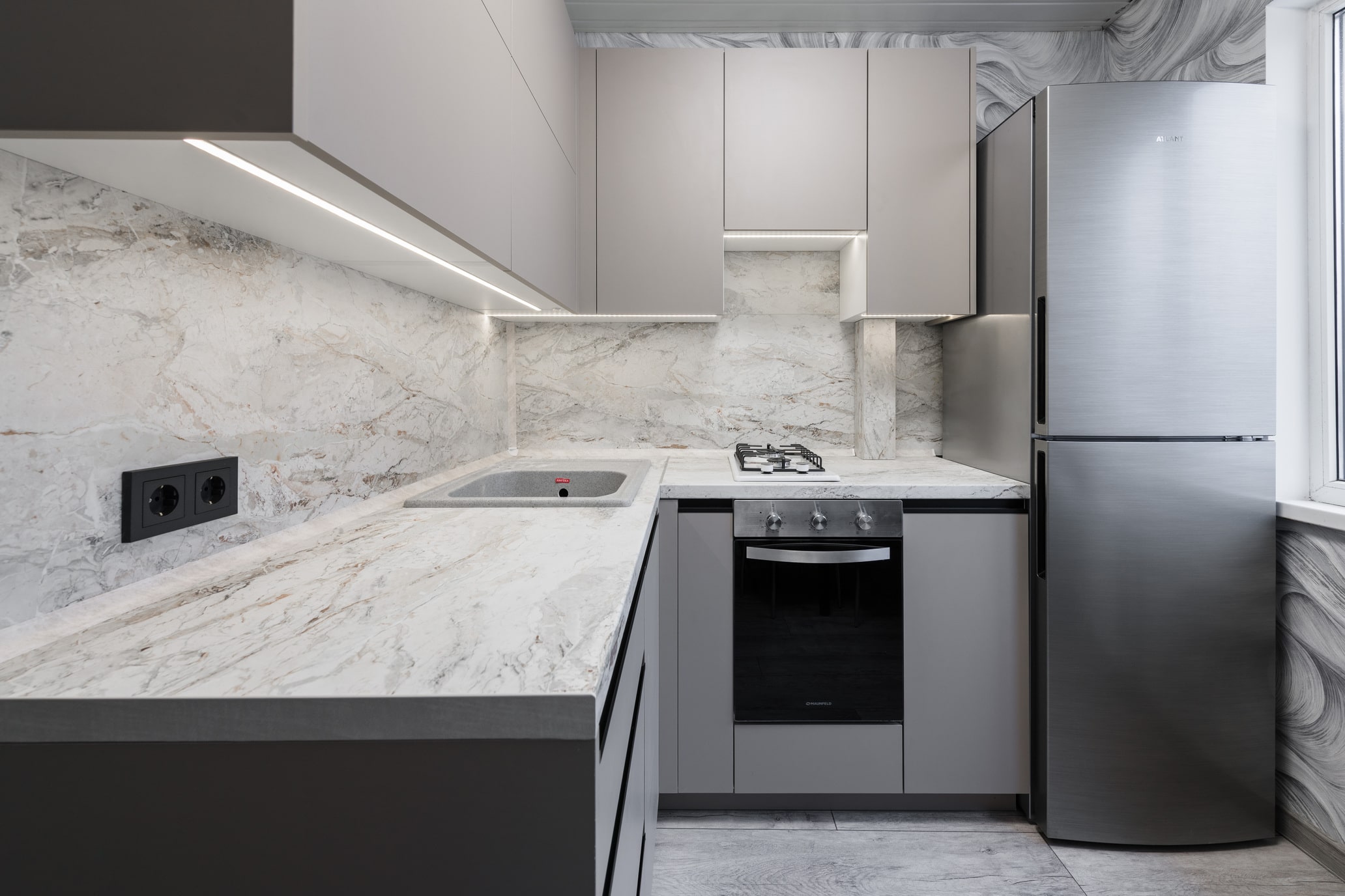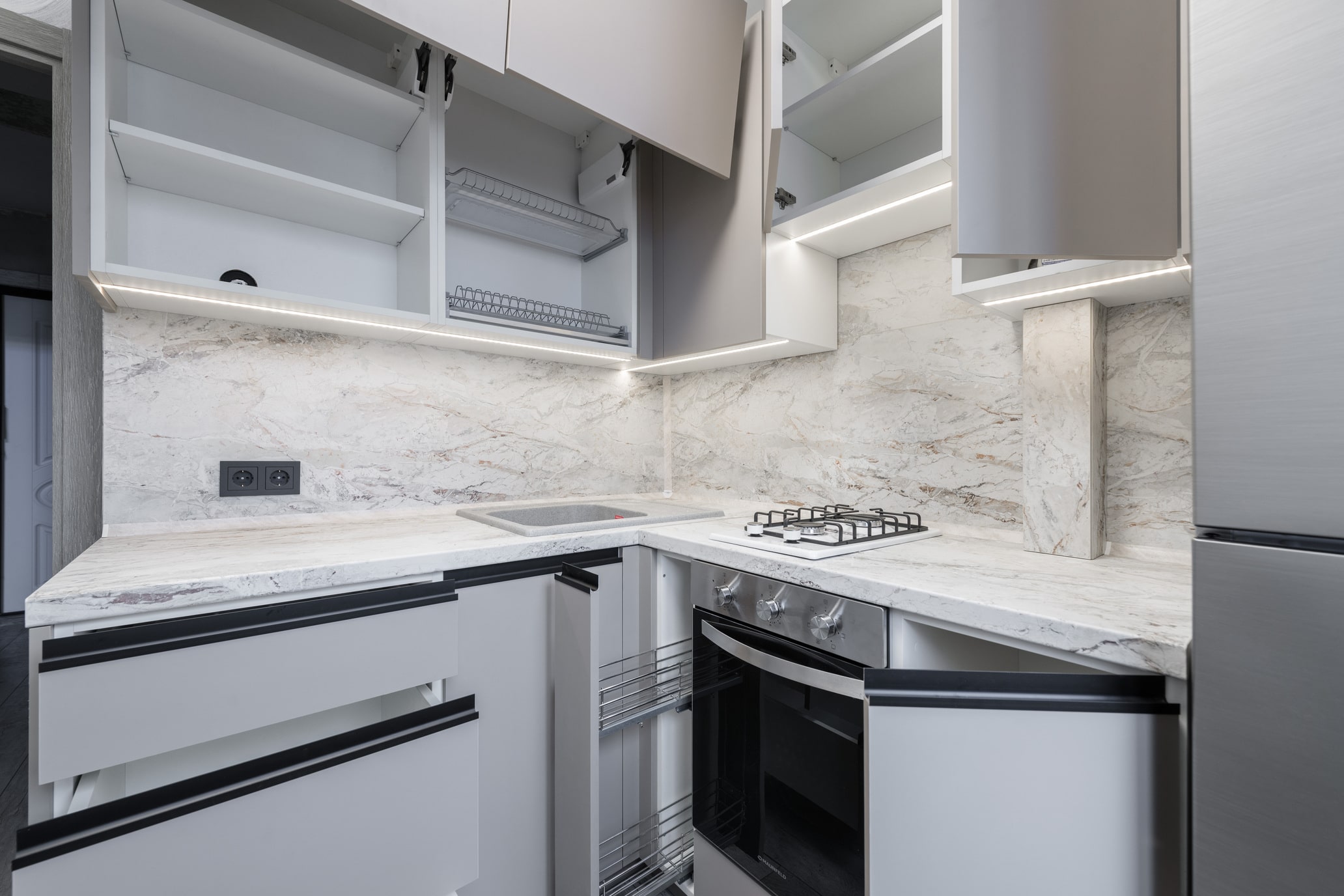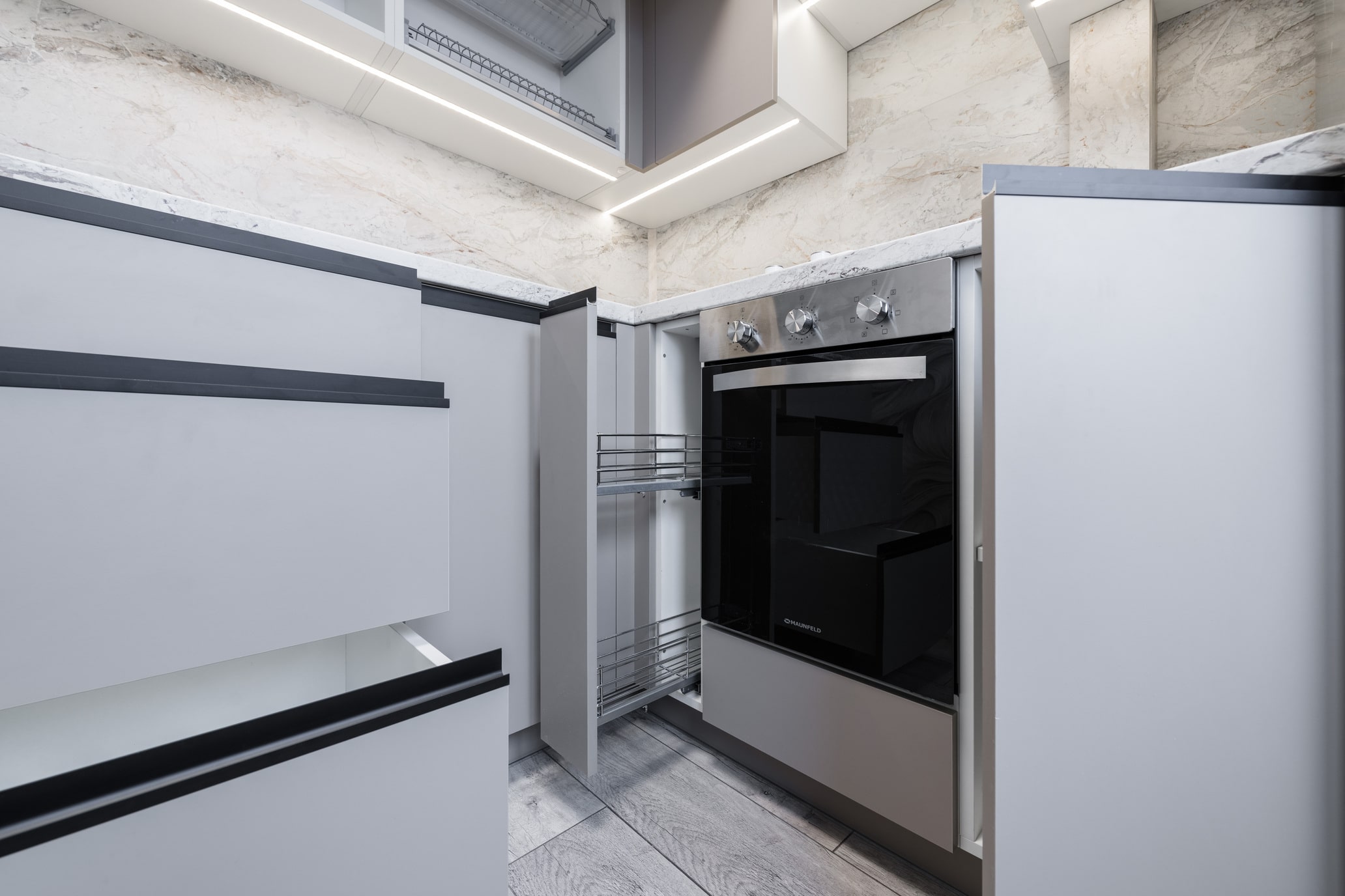 Разработка эргономичного проекта кухни вместе с профессионалом, подбор фурнитуры и материалов. Окончательный расчет стоимости.