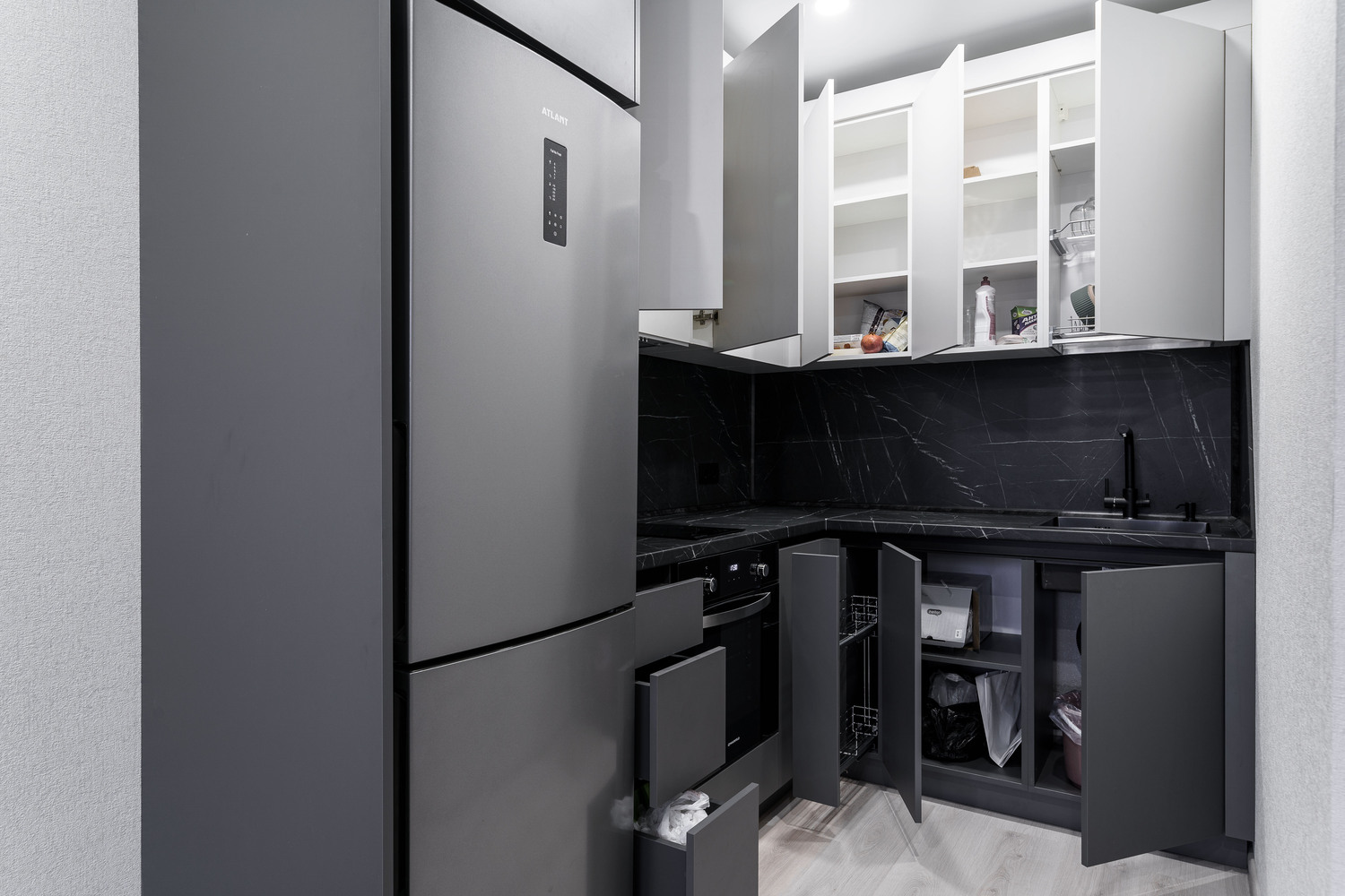 Разработка эргономичного проекта кухни вместе с профессионалом, подбор фурнитуры и материалов. Окончательный расчет стоимости.