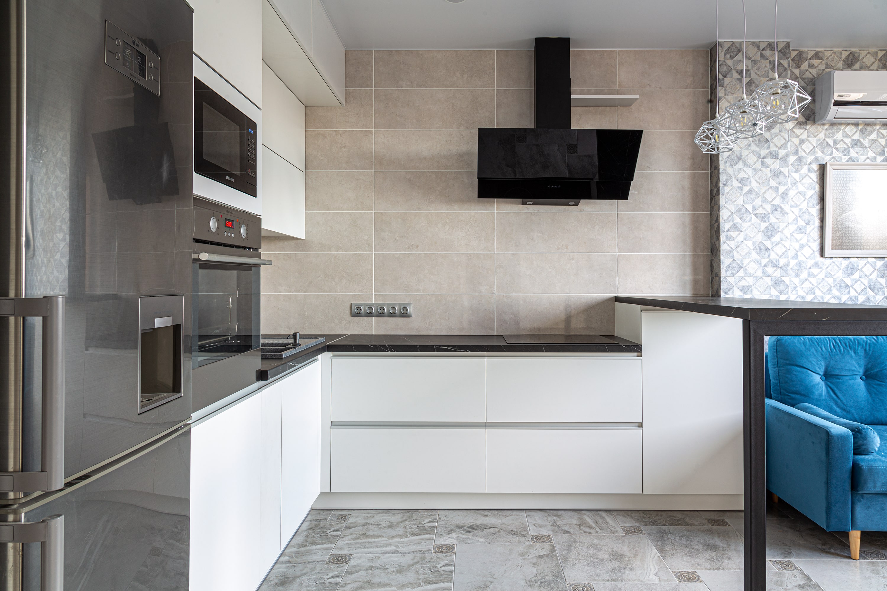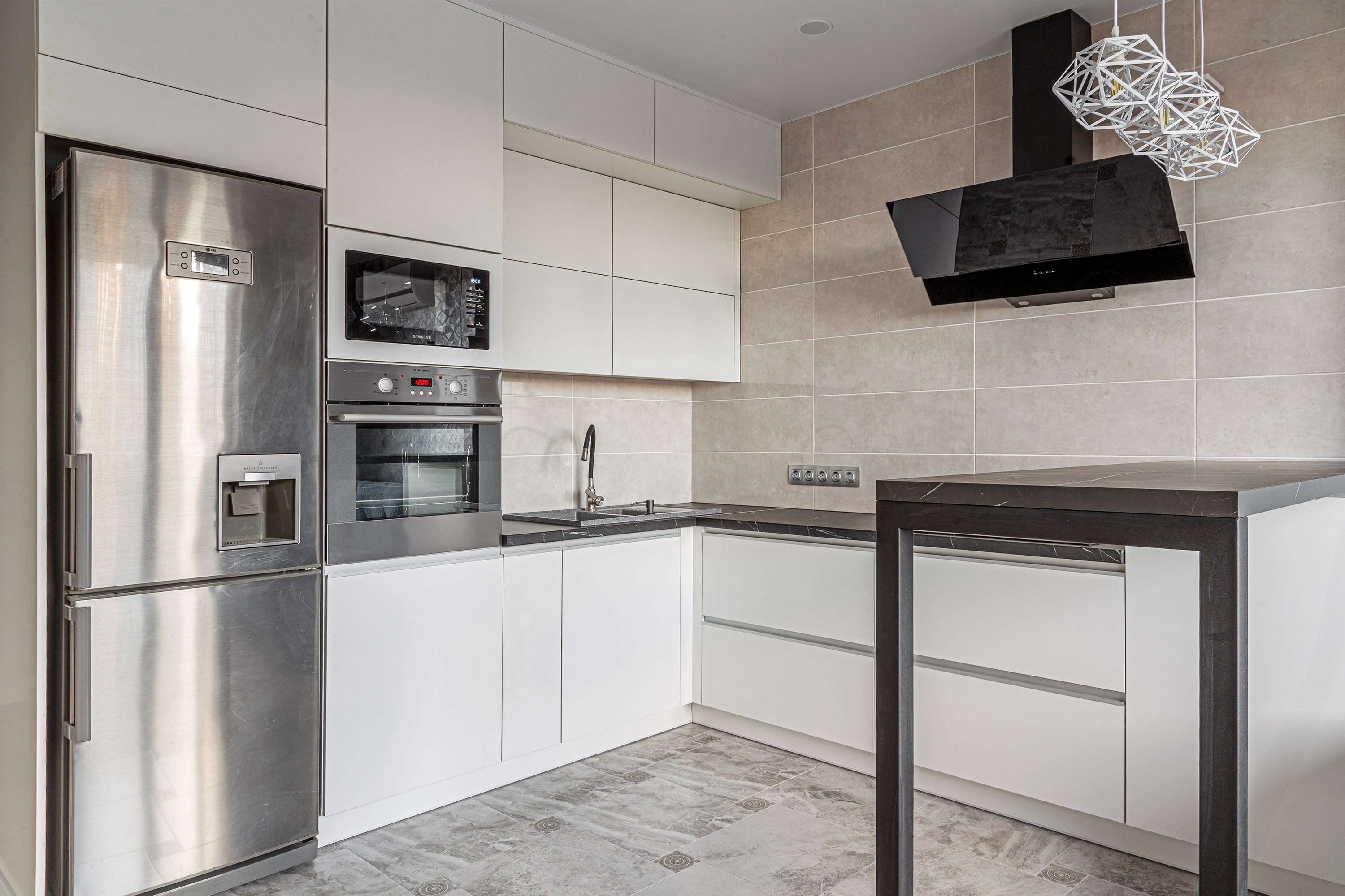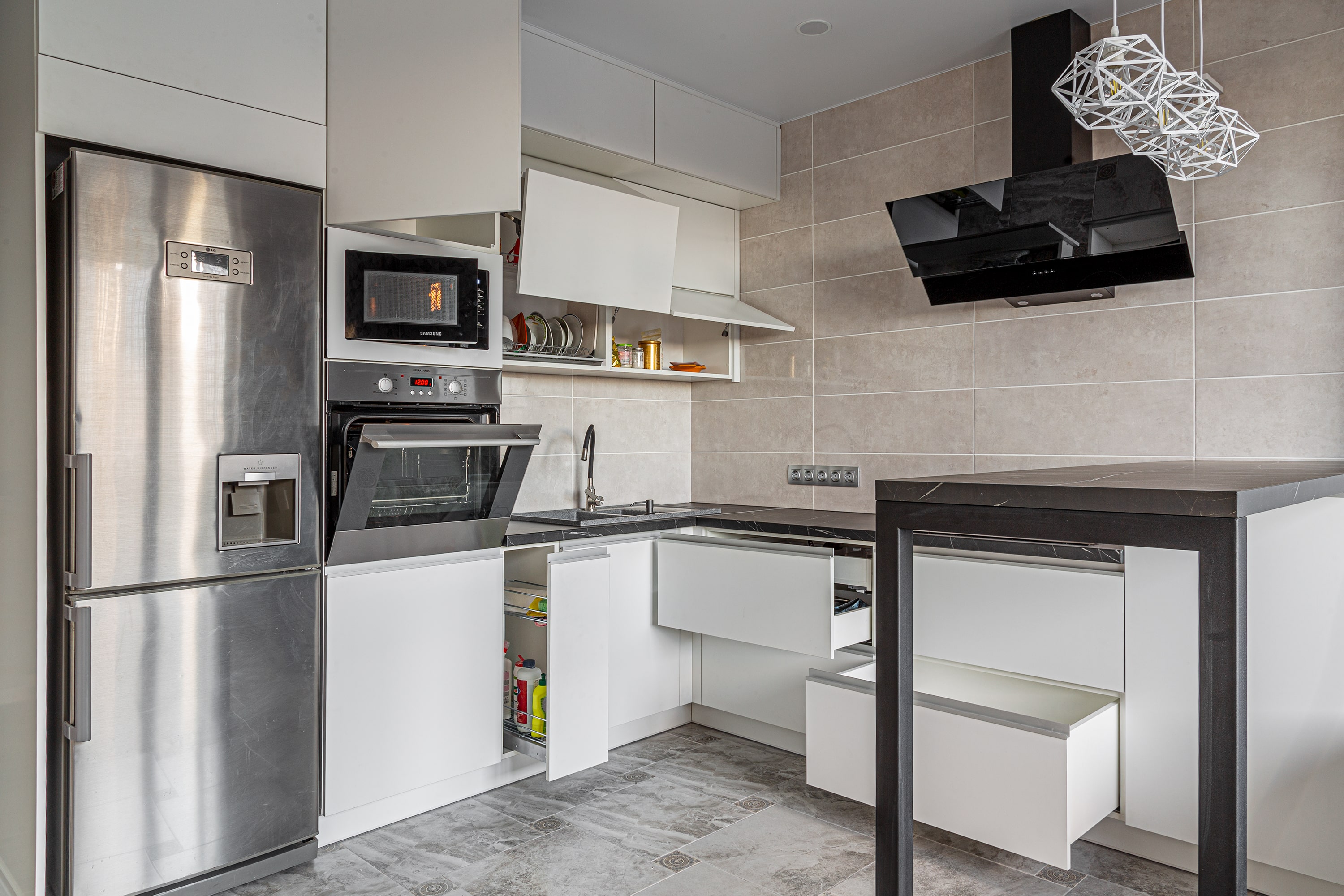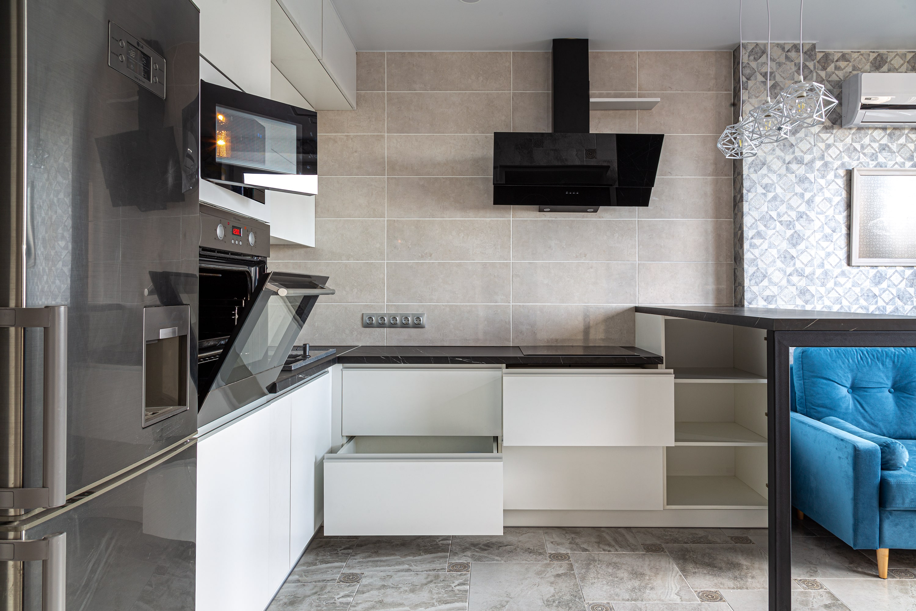 Разработка эргономичного проекта кухни вместе с профессионалом, подбор фурнитуры и материалов. Окончательный расчет стоимости.