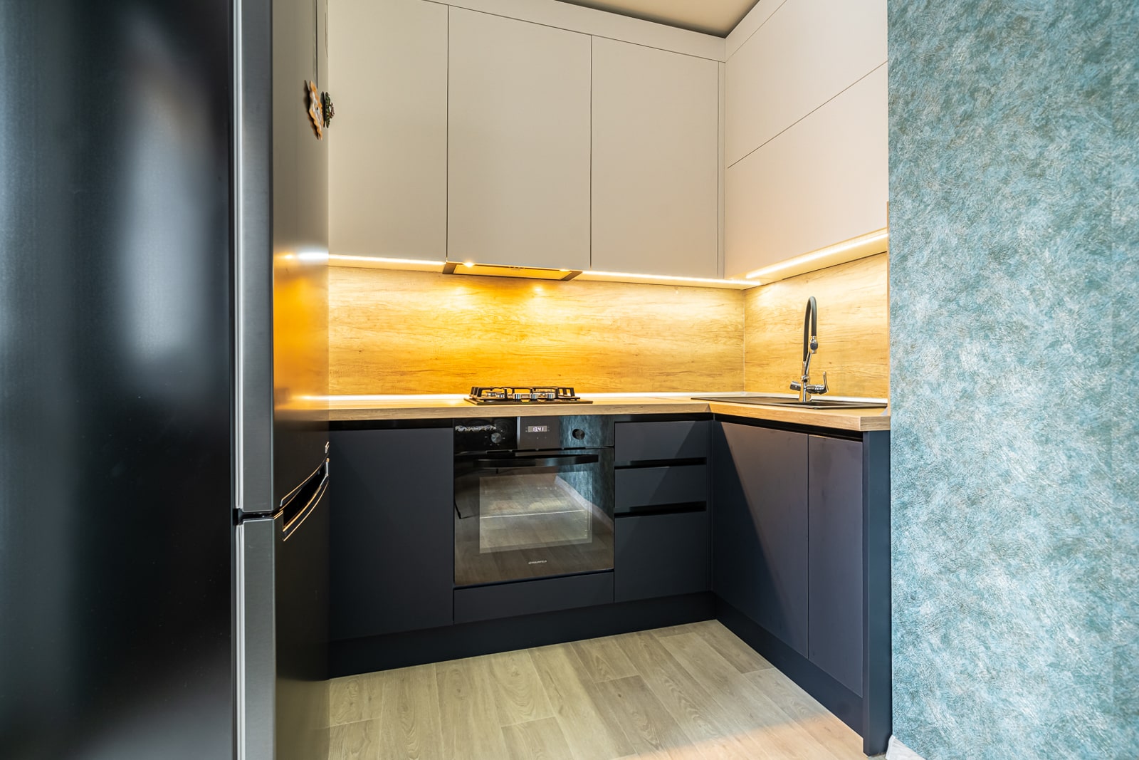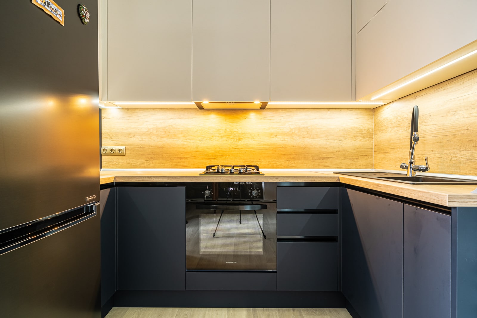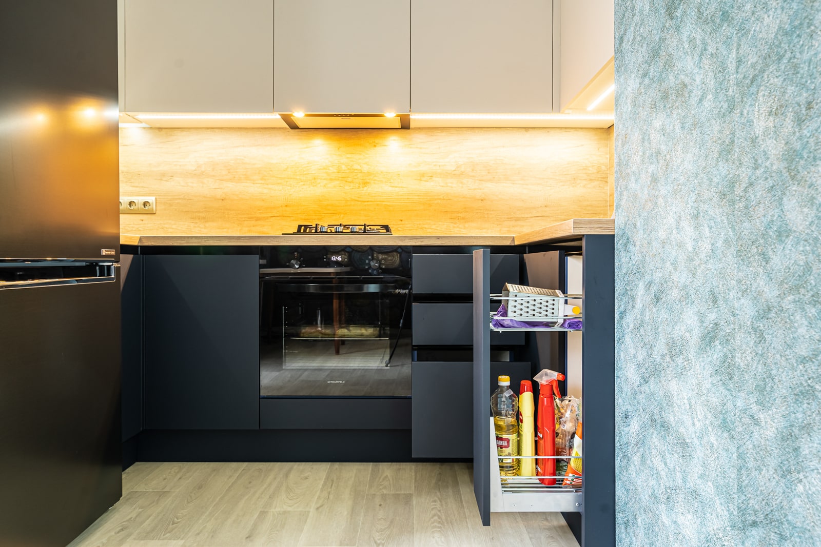Разработка эргономичного проекта кухни вместе с профессионалом, подбор фурнитуры и материалов. Окончательный расчет стоимости.