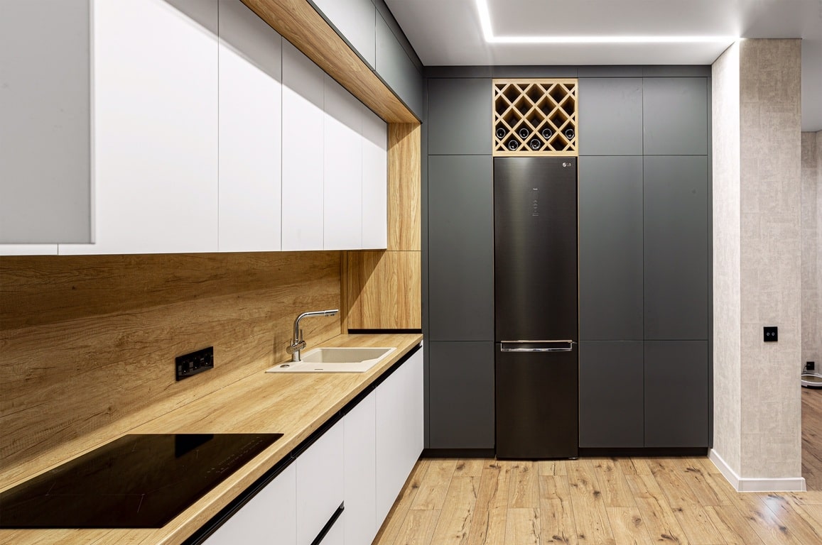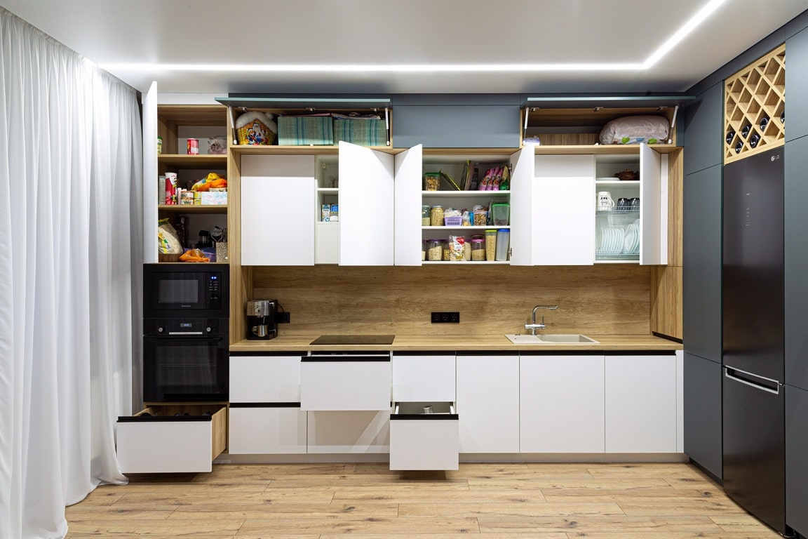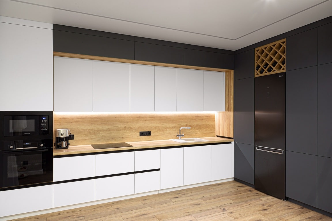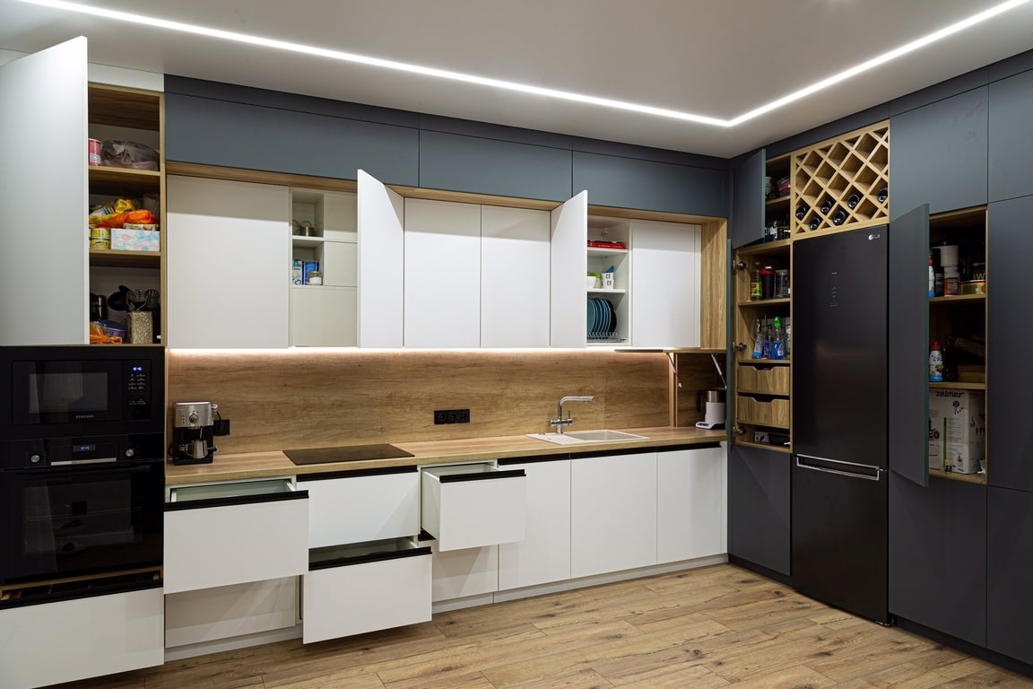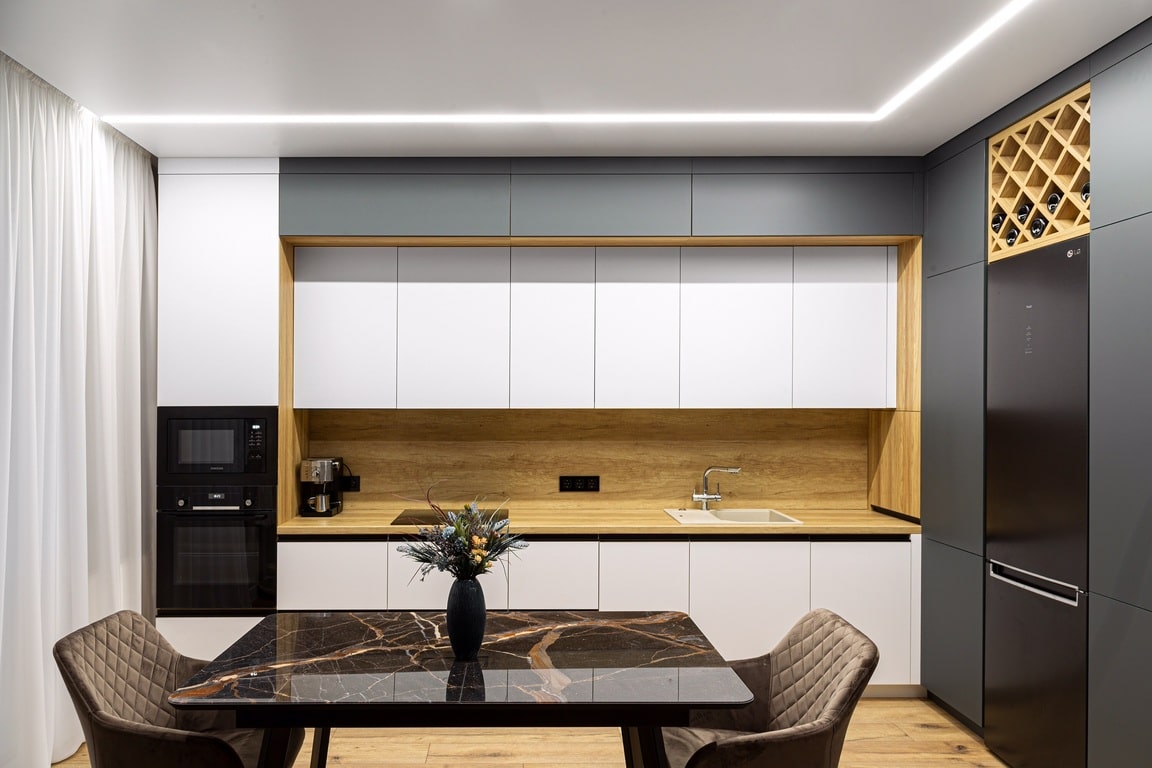 Разработка эргономичного проекта кухни вместе с профессионалом, подбор фурнитуры и материалов. Окончательный расчет стоимости.