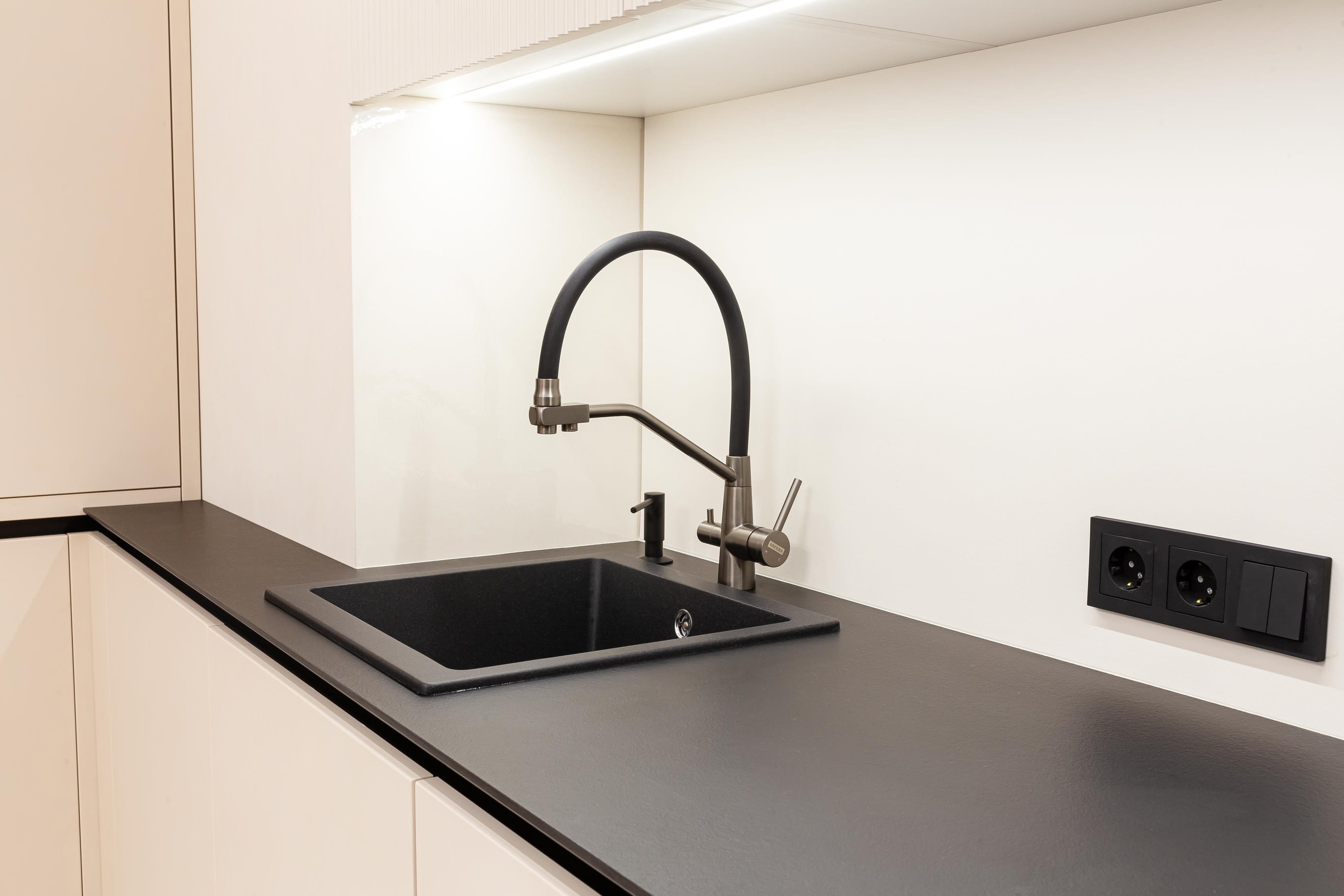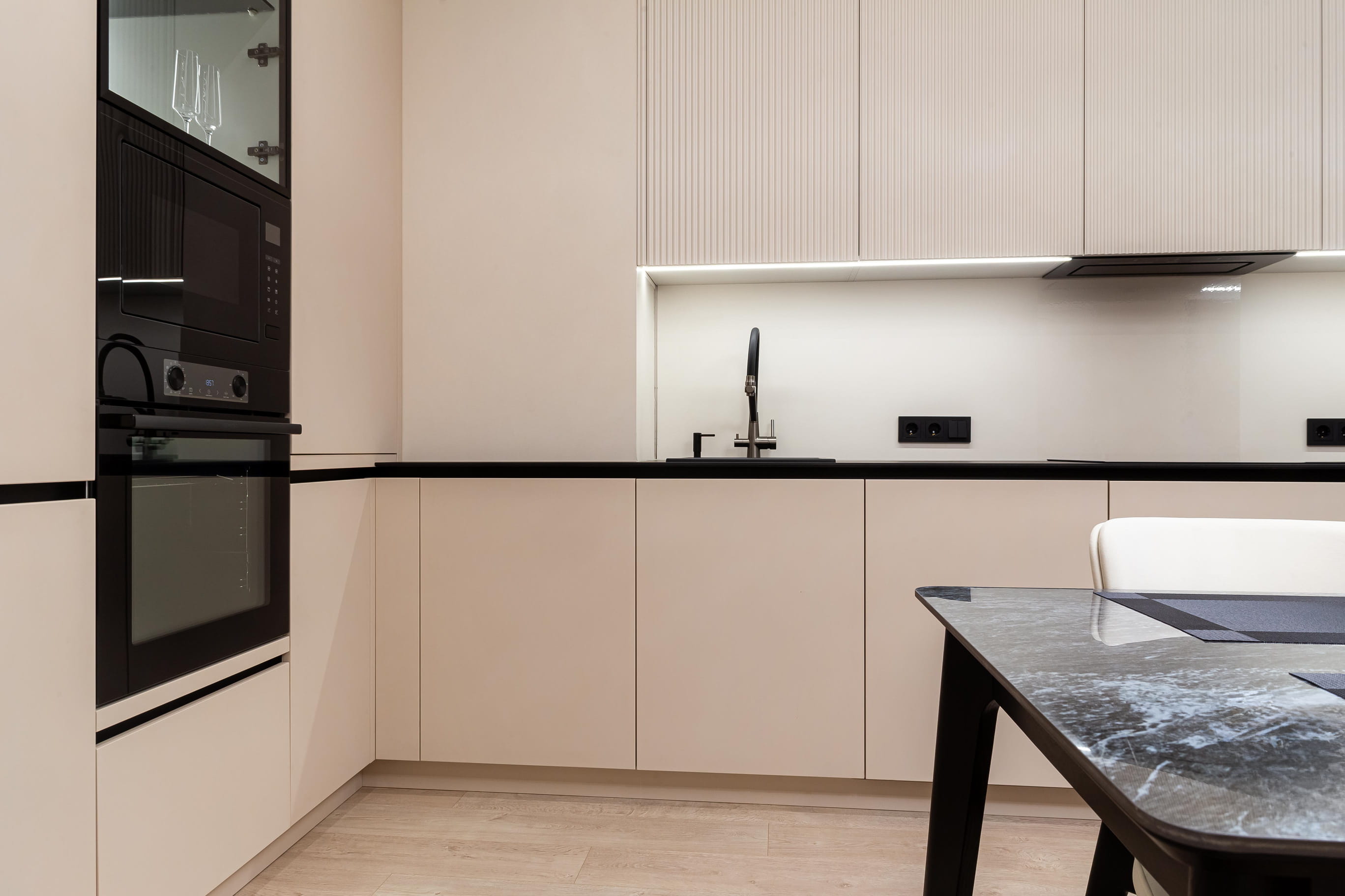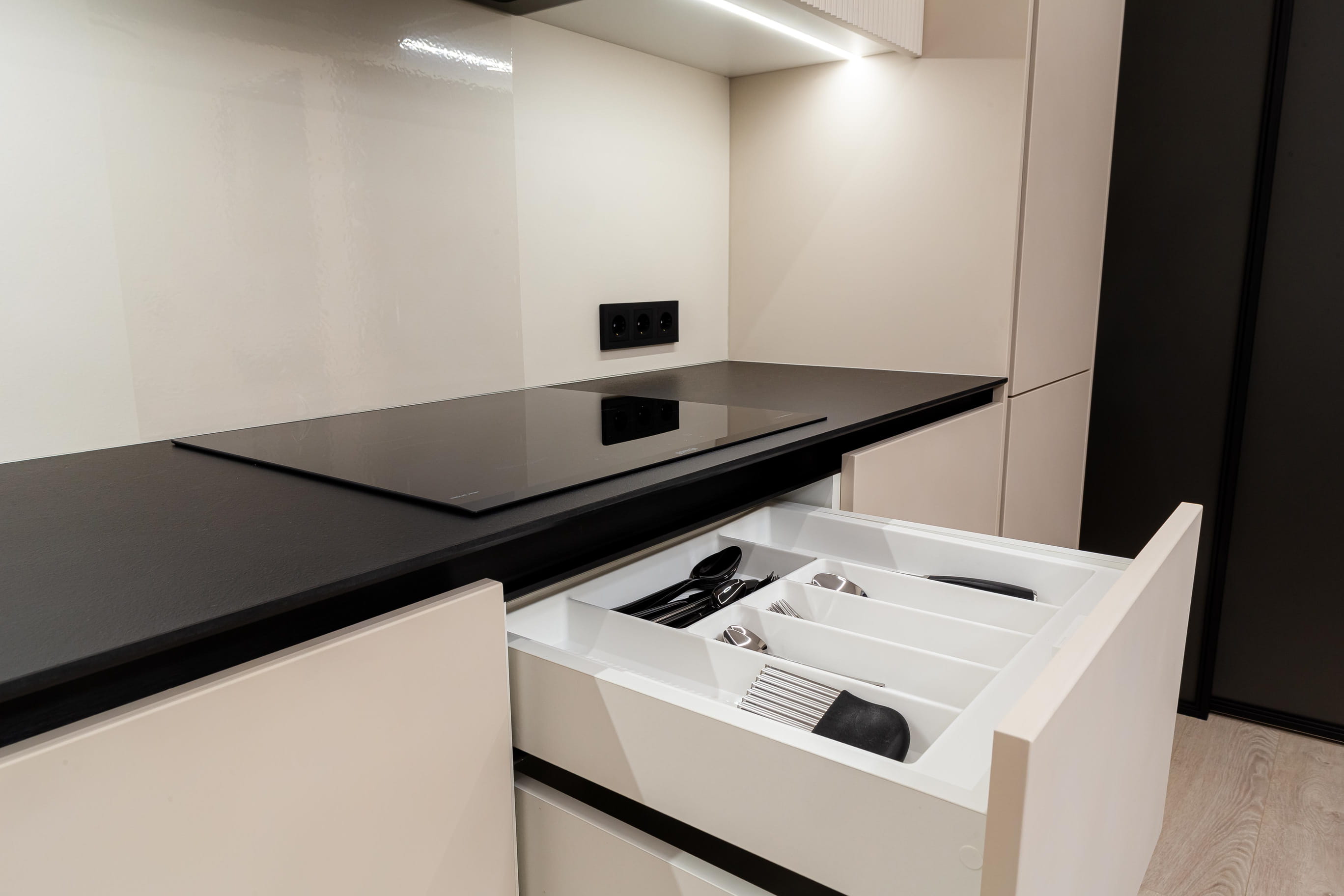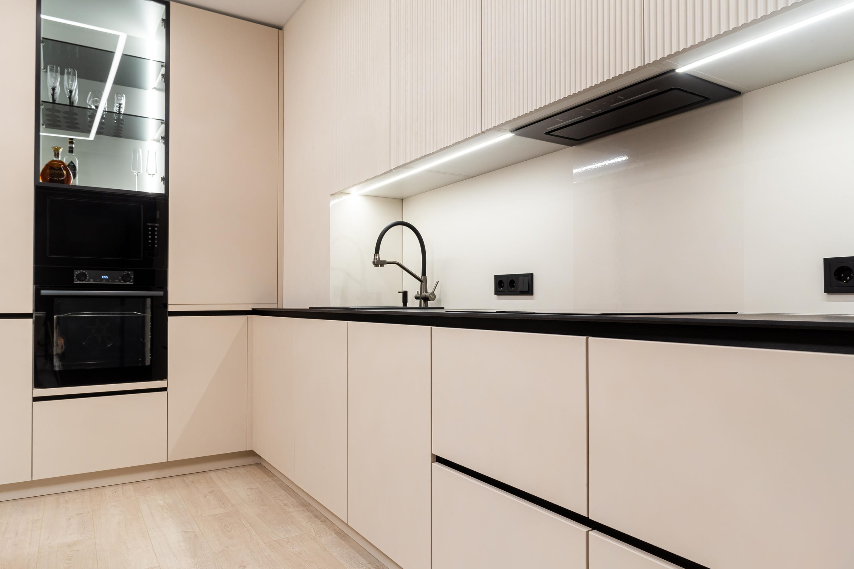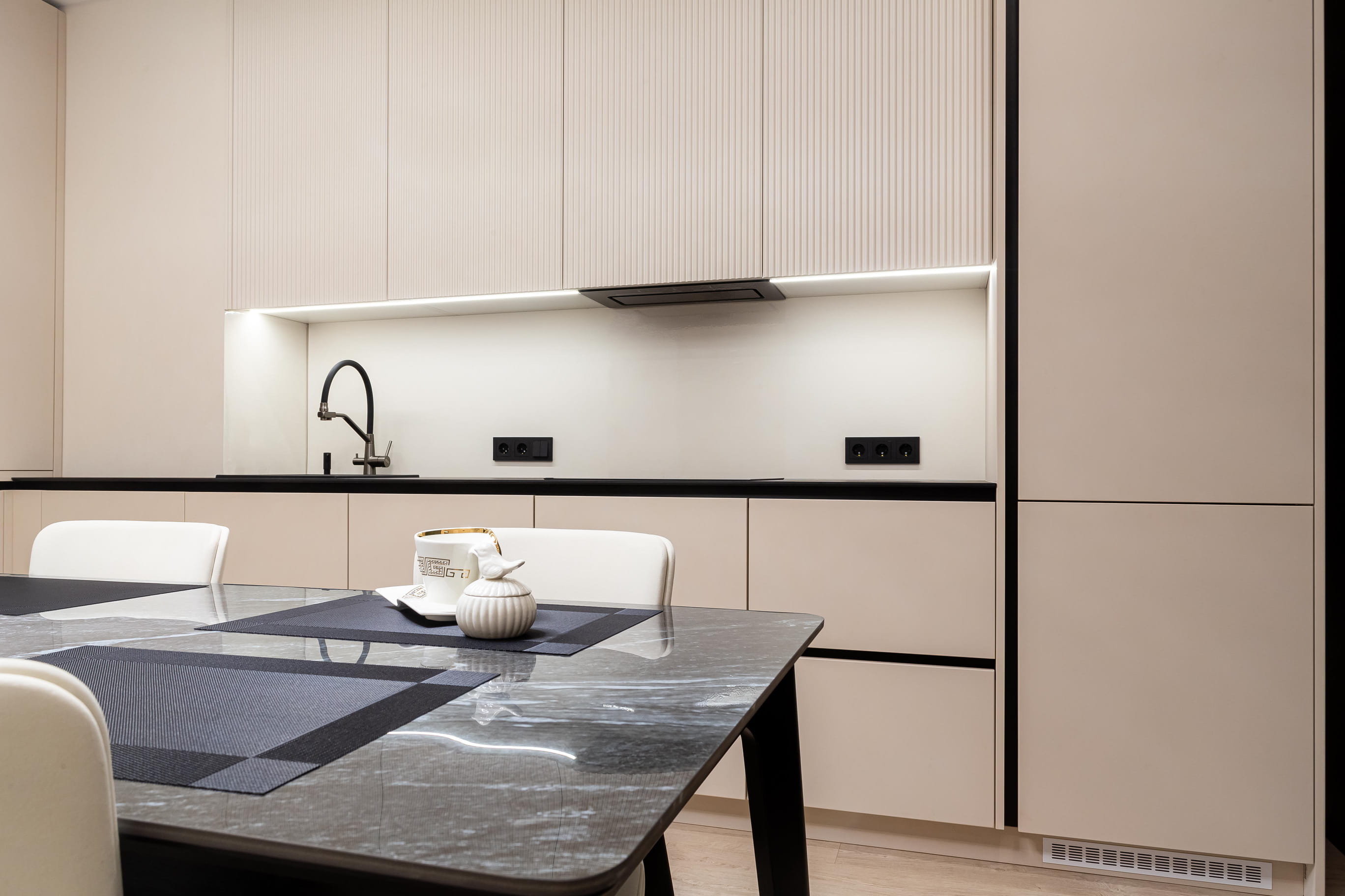 Разработка эргономичного проекта кухни вместе с профессионалом, подбор фурнитуры и материалов. Окончательный расчет стоимости.