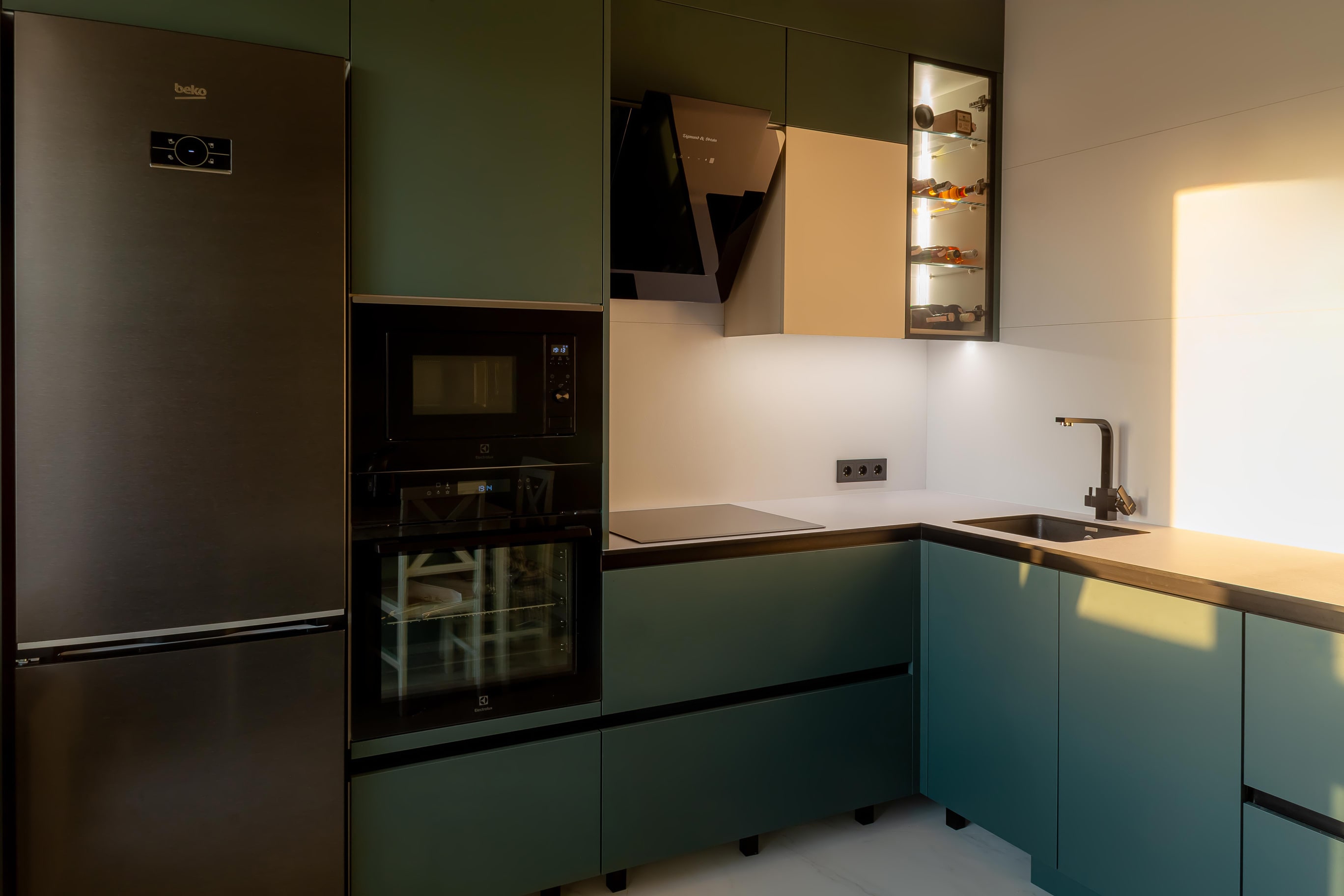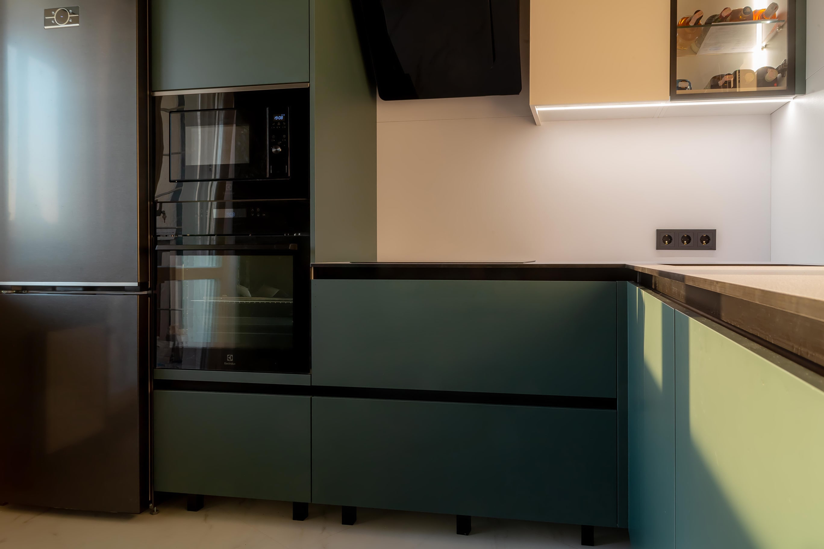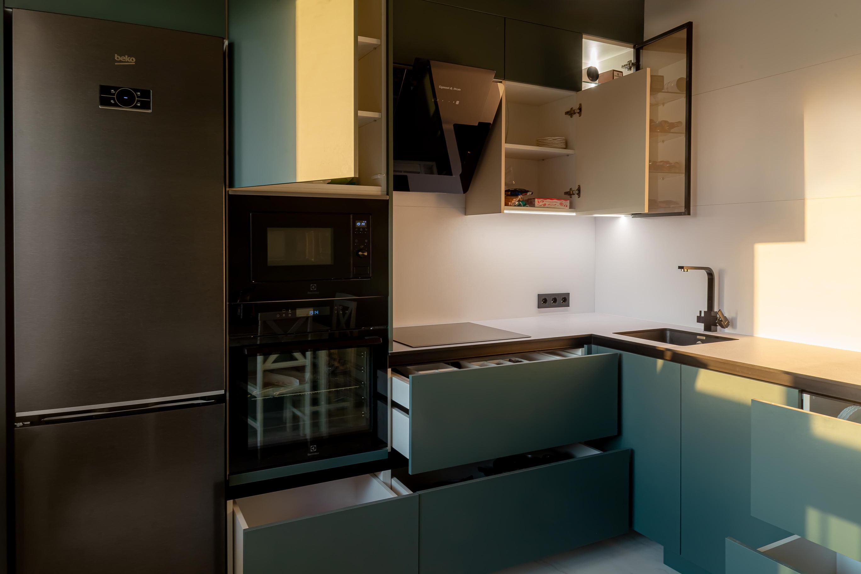 Разработка эргономичного проекта кухни вместе с профессионалом, подбор фурнитуры и материалов. Окончательный расчет стоимости.